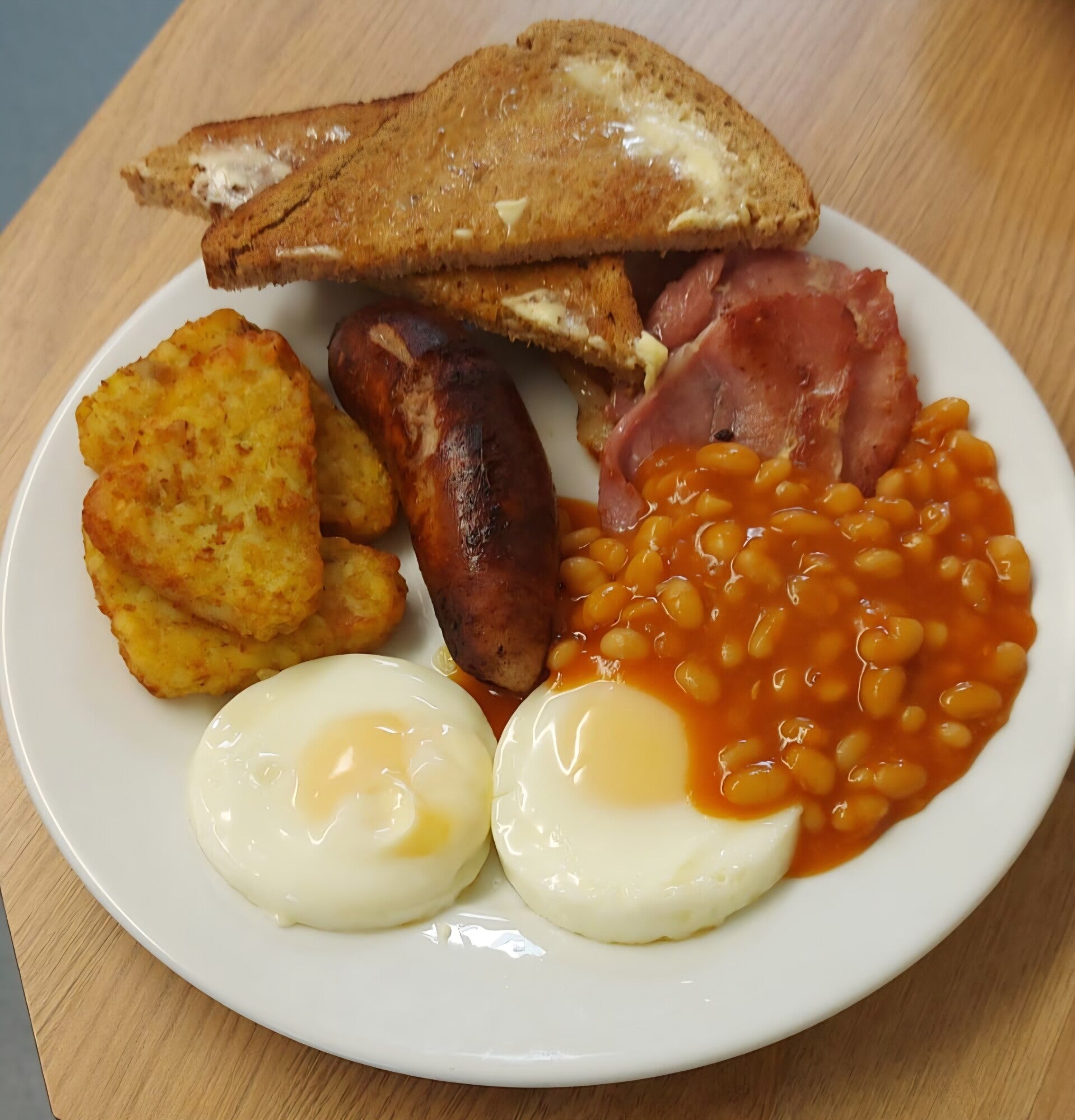 The full English breakfast comes in two sizes, large and small, plus toast and a mug of tea or coffee.. Bacon or sausage baps with or without a fried egg are still available too.